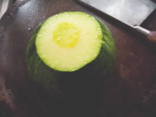 2.削去瓜蒂和瓜柄。