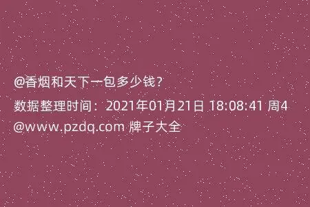 现在的香烟是有属于自己的牌子的,可是我现在国内香烟牌子那么多,我都不清楚,香烟的售卖价格了,例如香烟和天下,打算了解一下的,香烟和天下一包价格多少钱?请告知。...